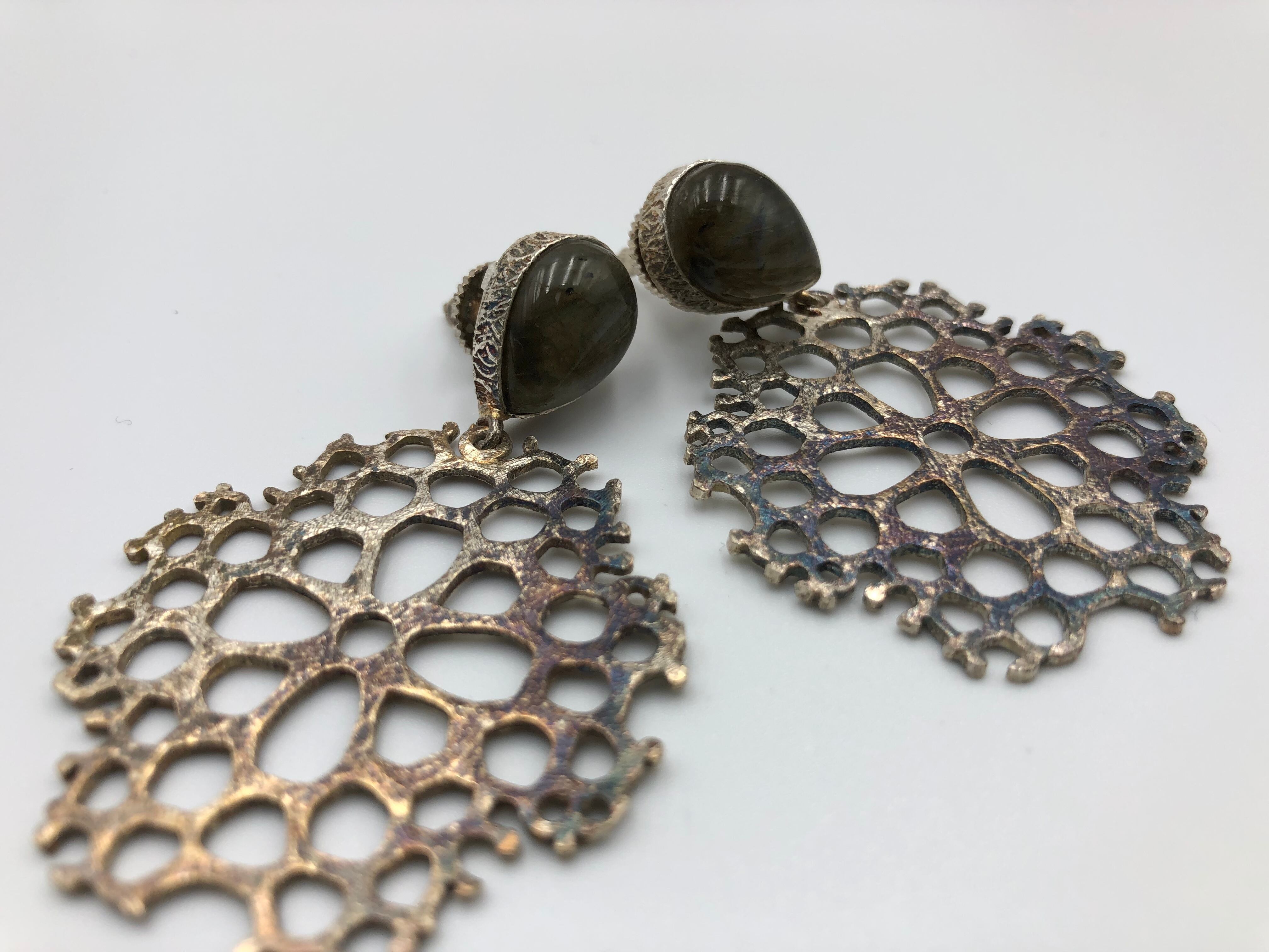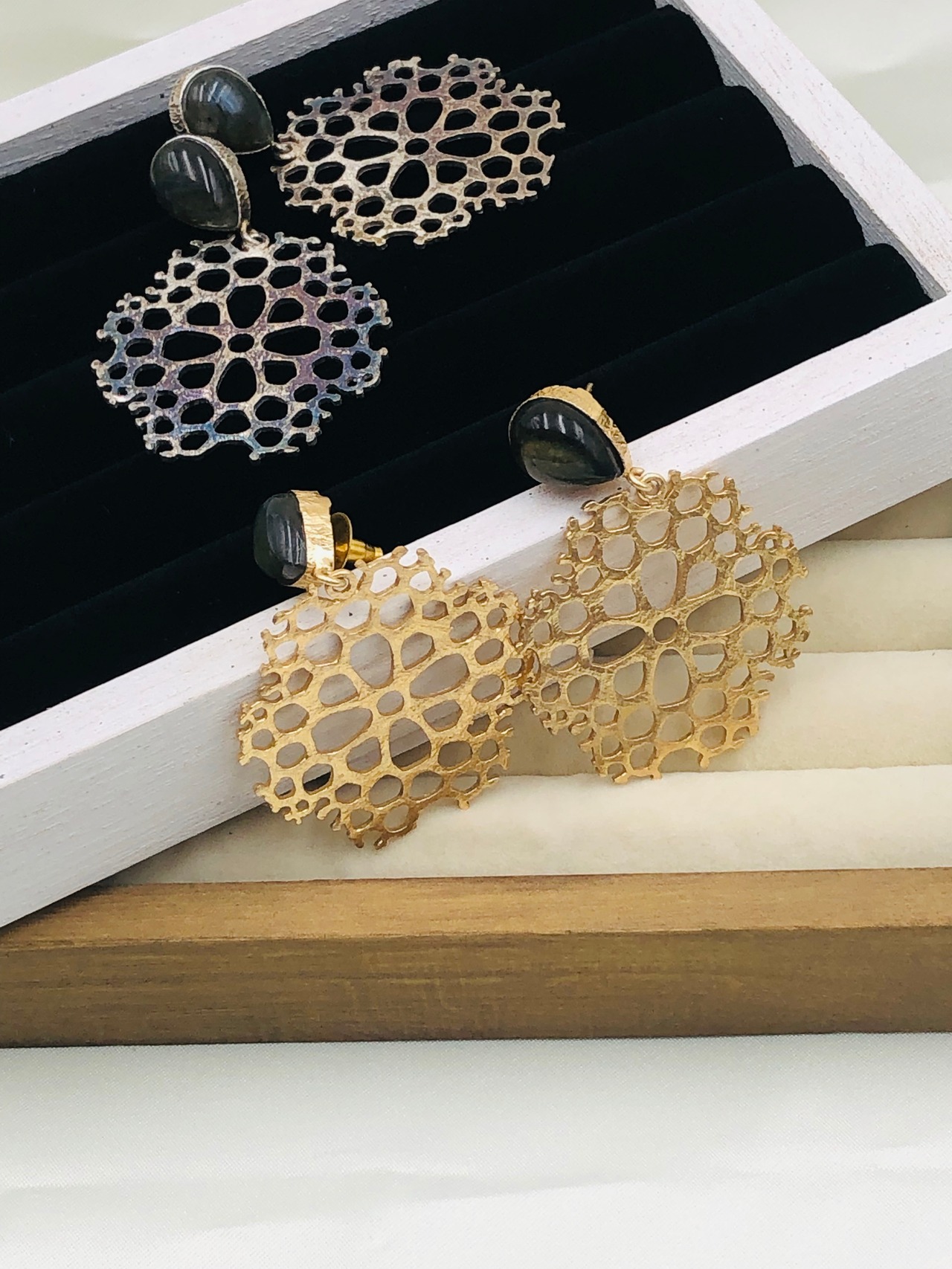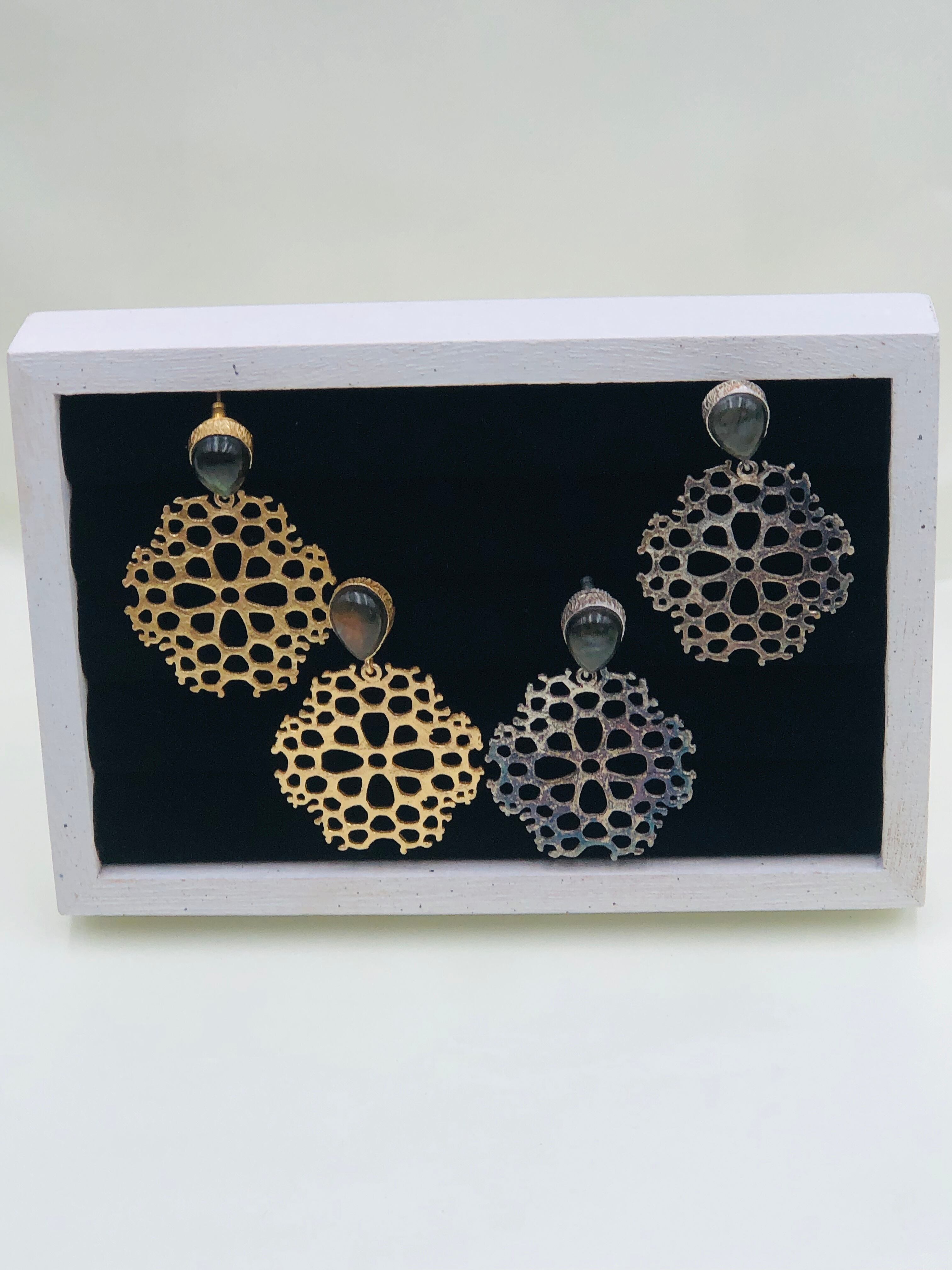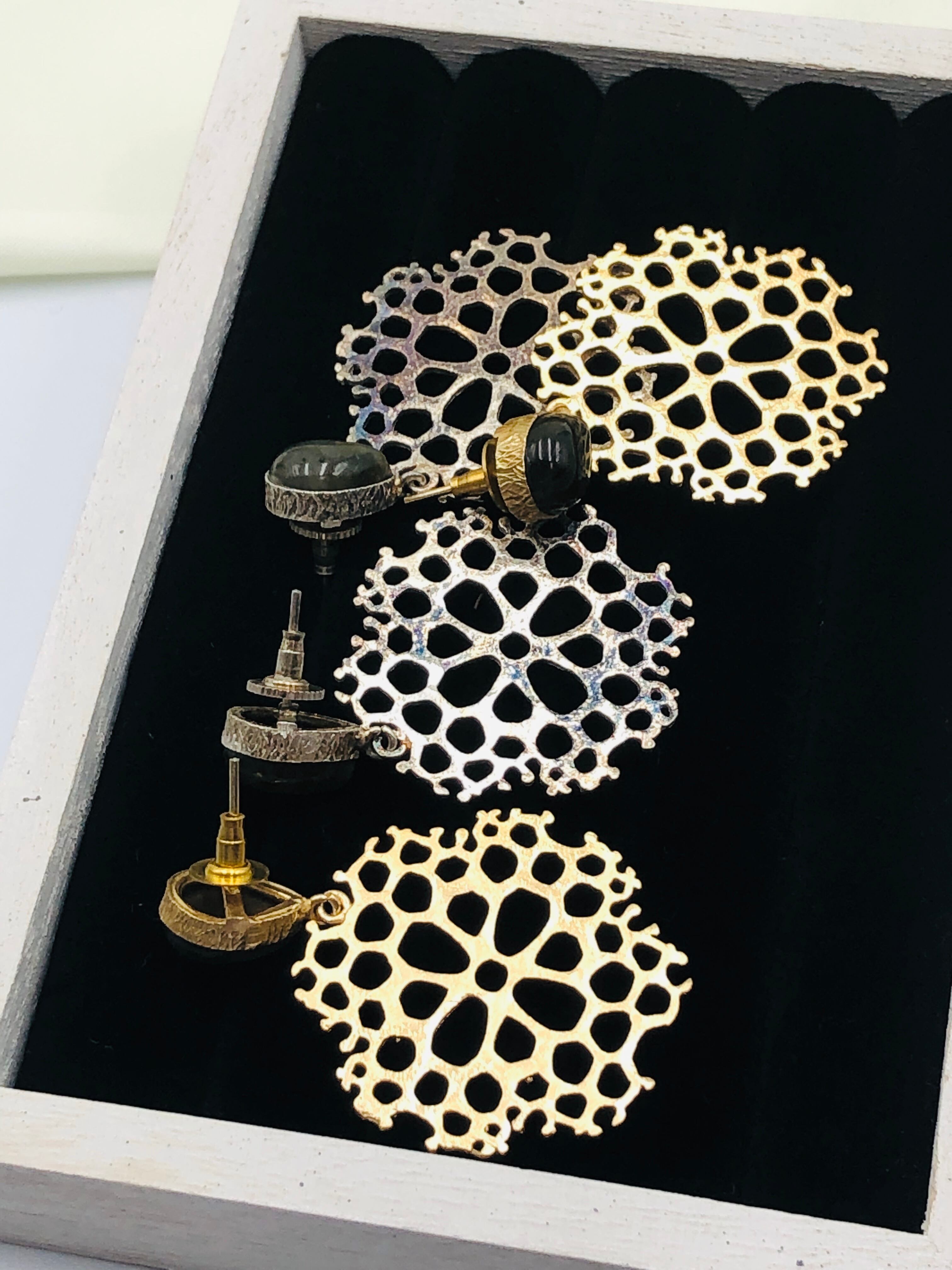 お花の細工とカラーストーンのピアス。