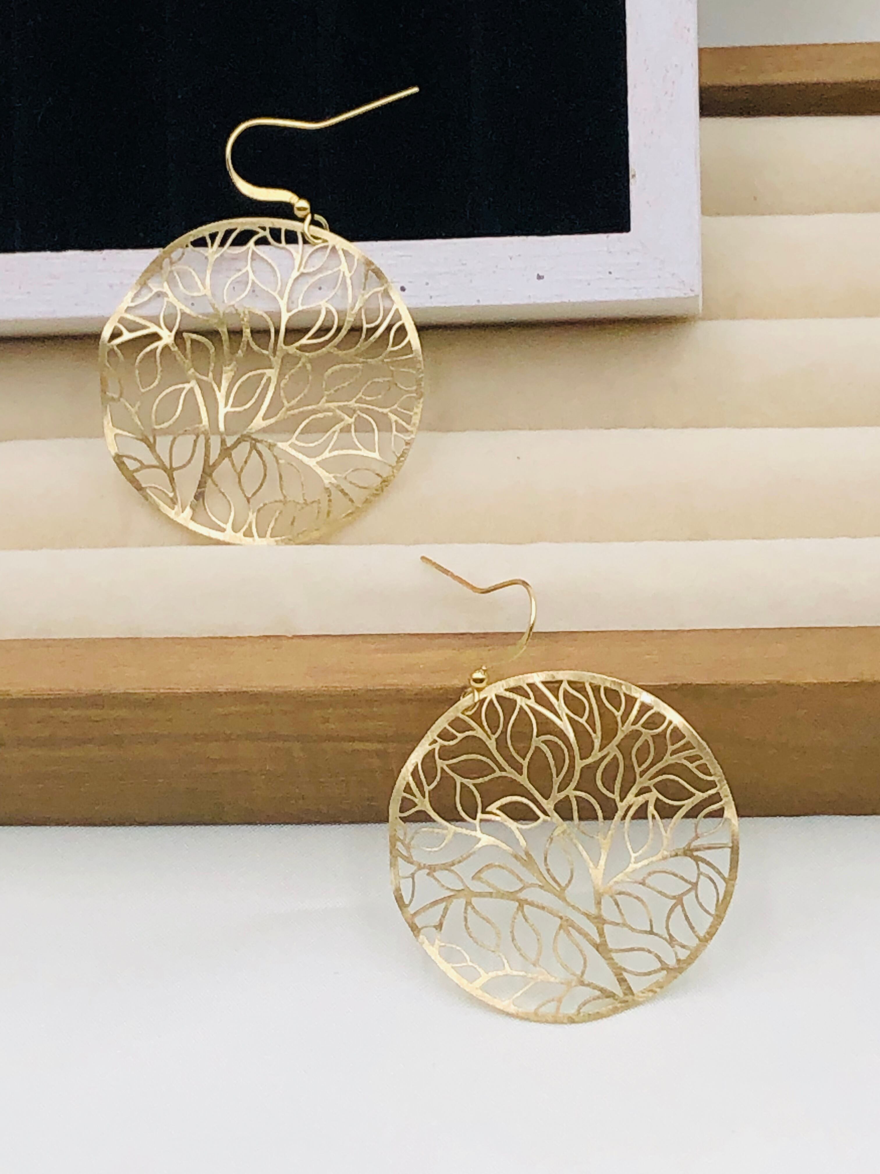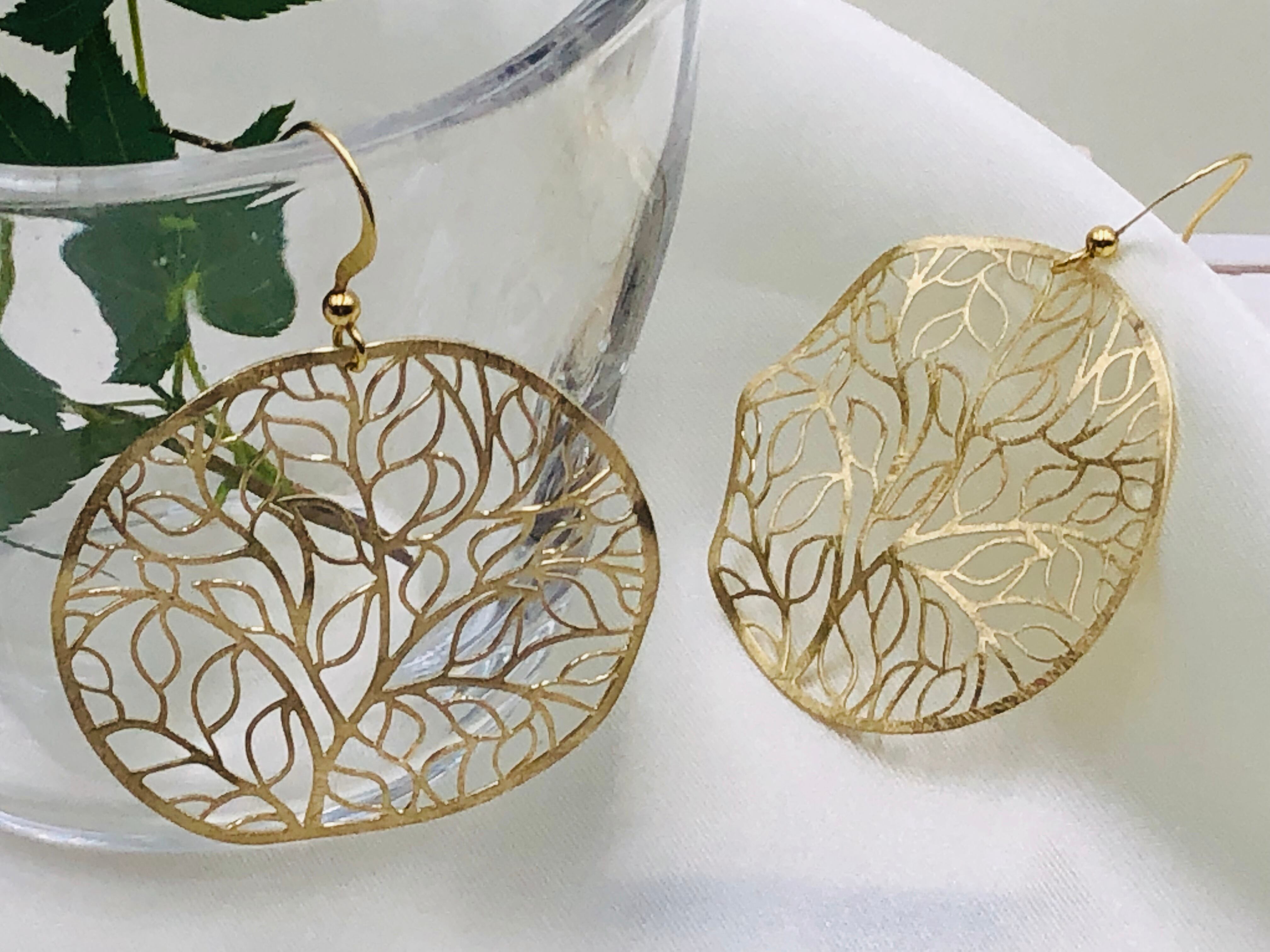 円形部分の細かな細工が特徴的なシンプルピアス。