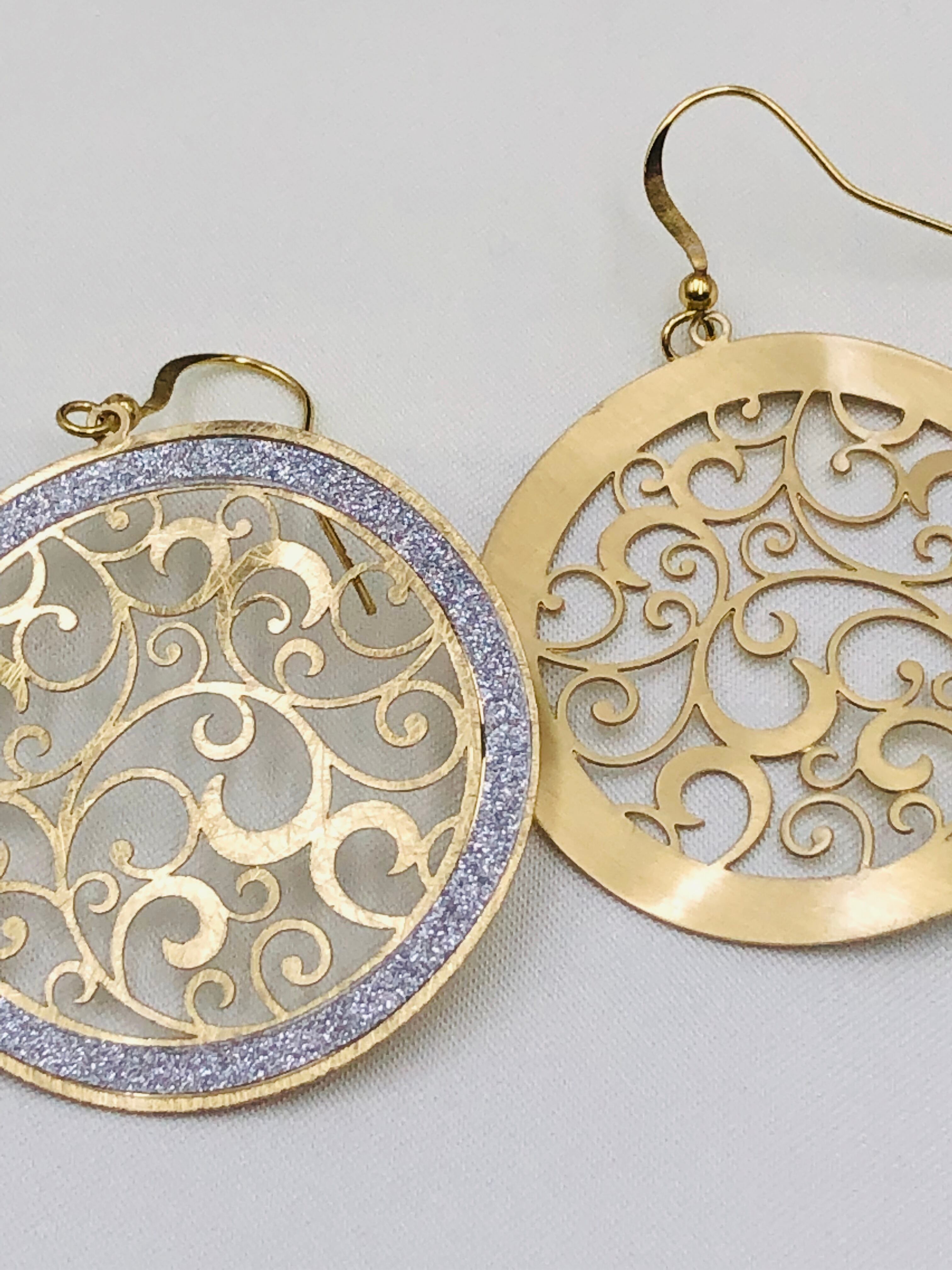 揺れるゴールドピアスに、シルバーラメ縁取りが付いたタイプが登場!