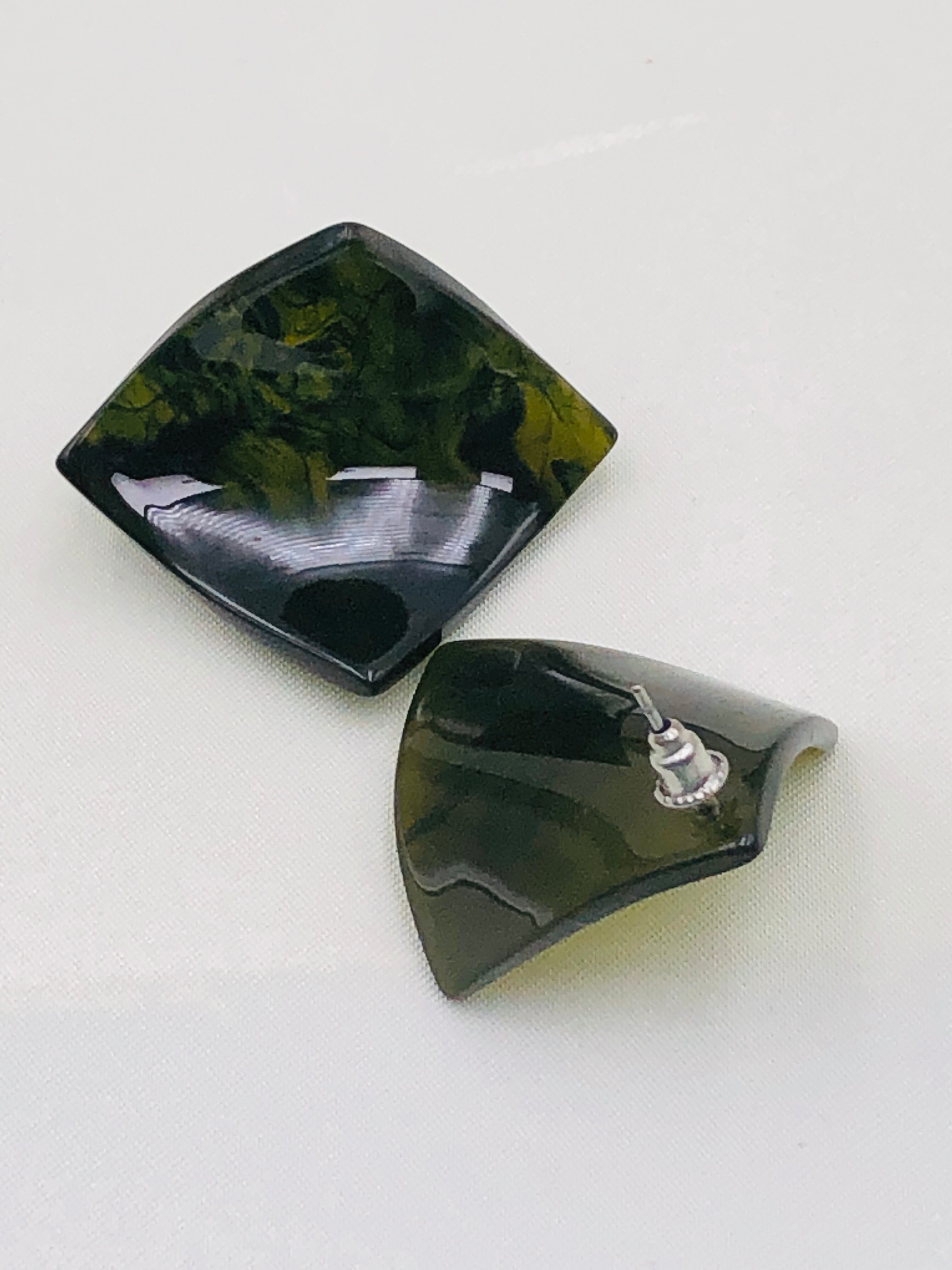 マーブル調の四角いピアス。