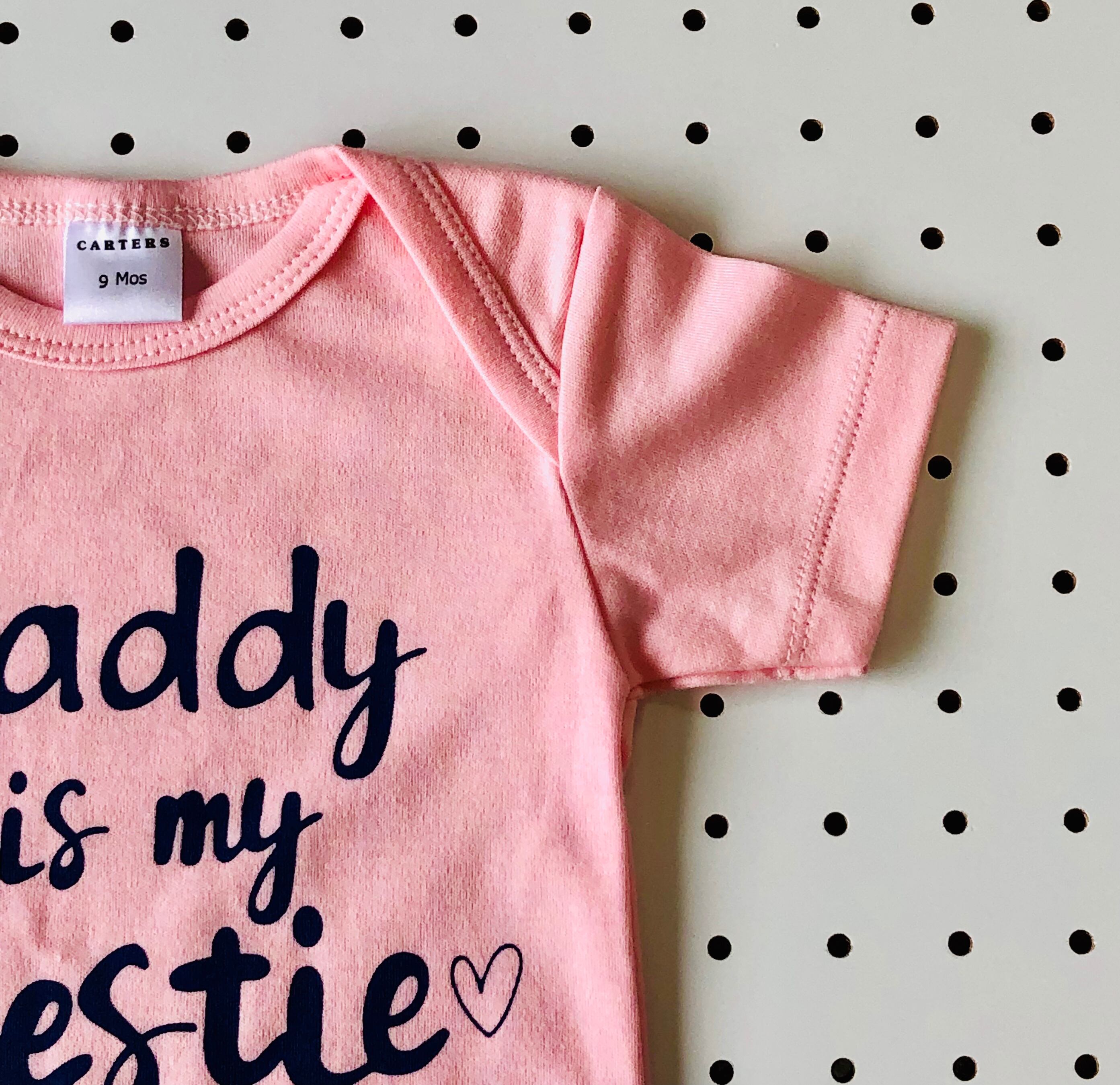 "Daddy is my bestie"のロゴがキュートなベビーロンパース。