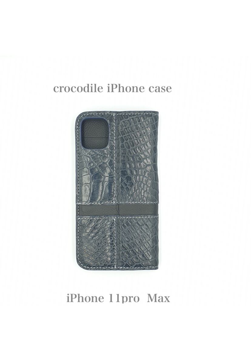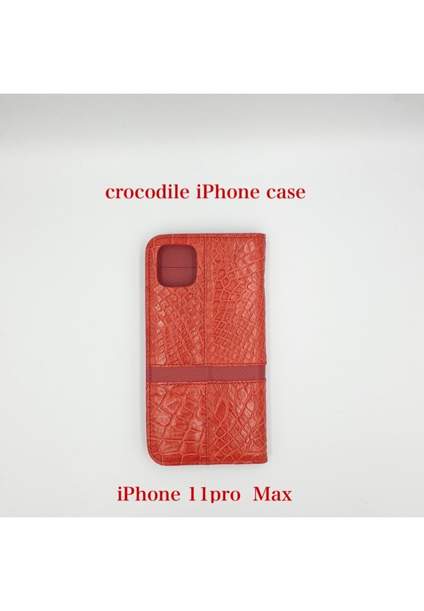 クロコダイルレザーのiPhone11pro手帳型ケース。