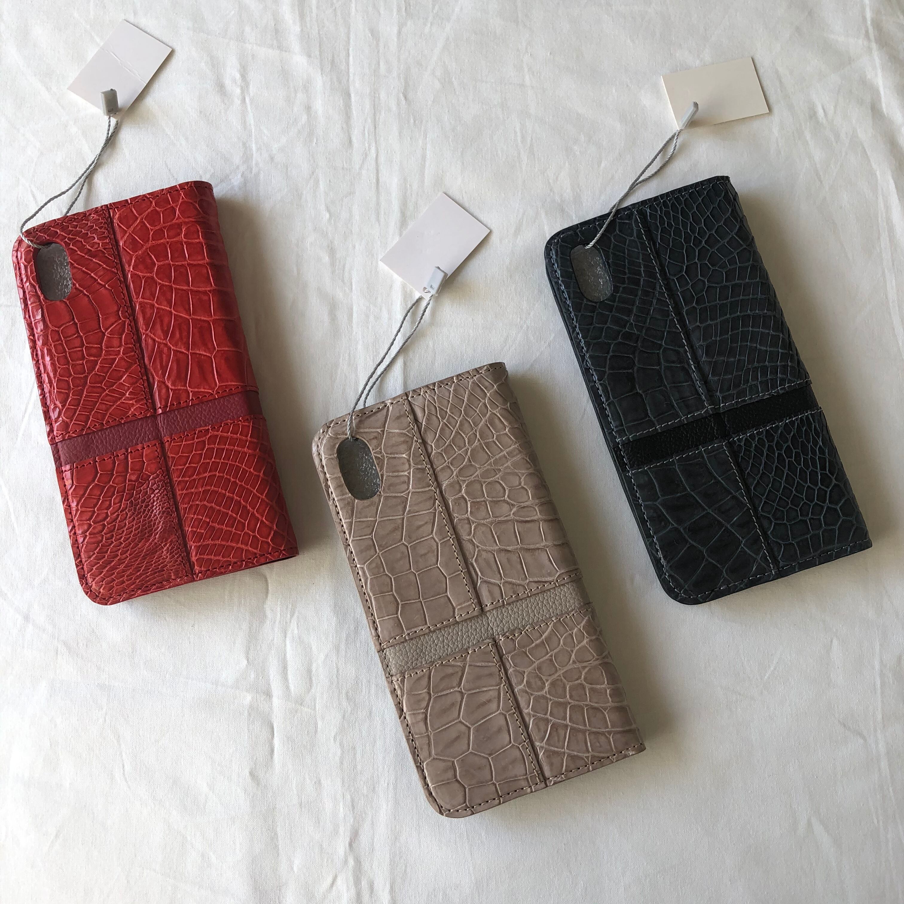 クロコダイルレザーのiPhoneXSとiPhoneXS Max 用のiPhoneケース。